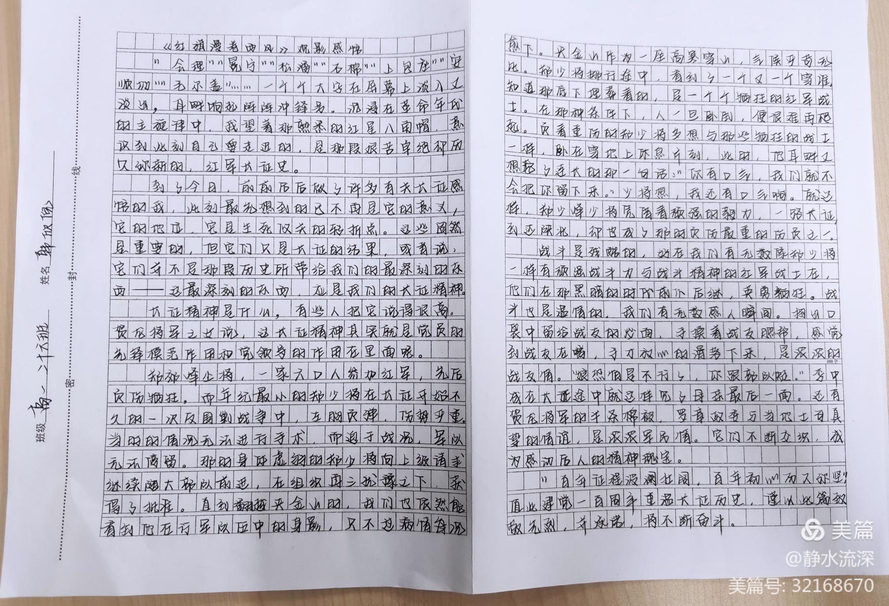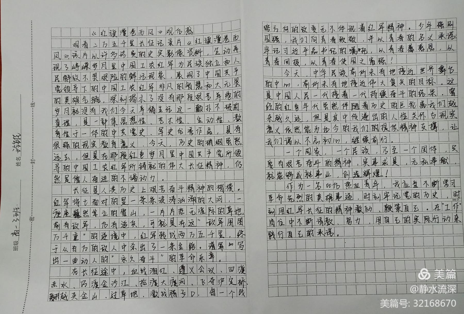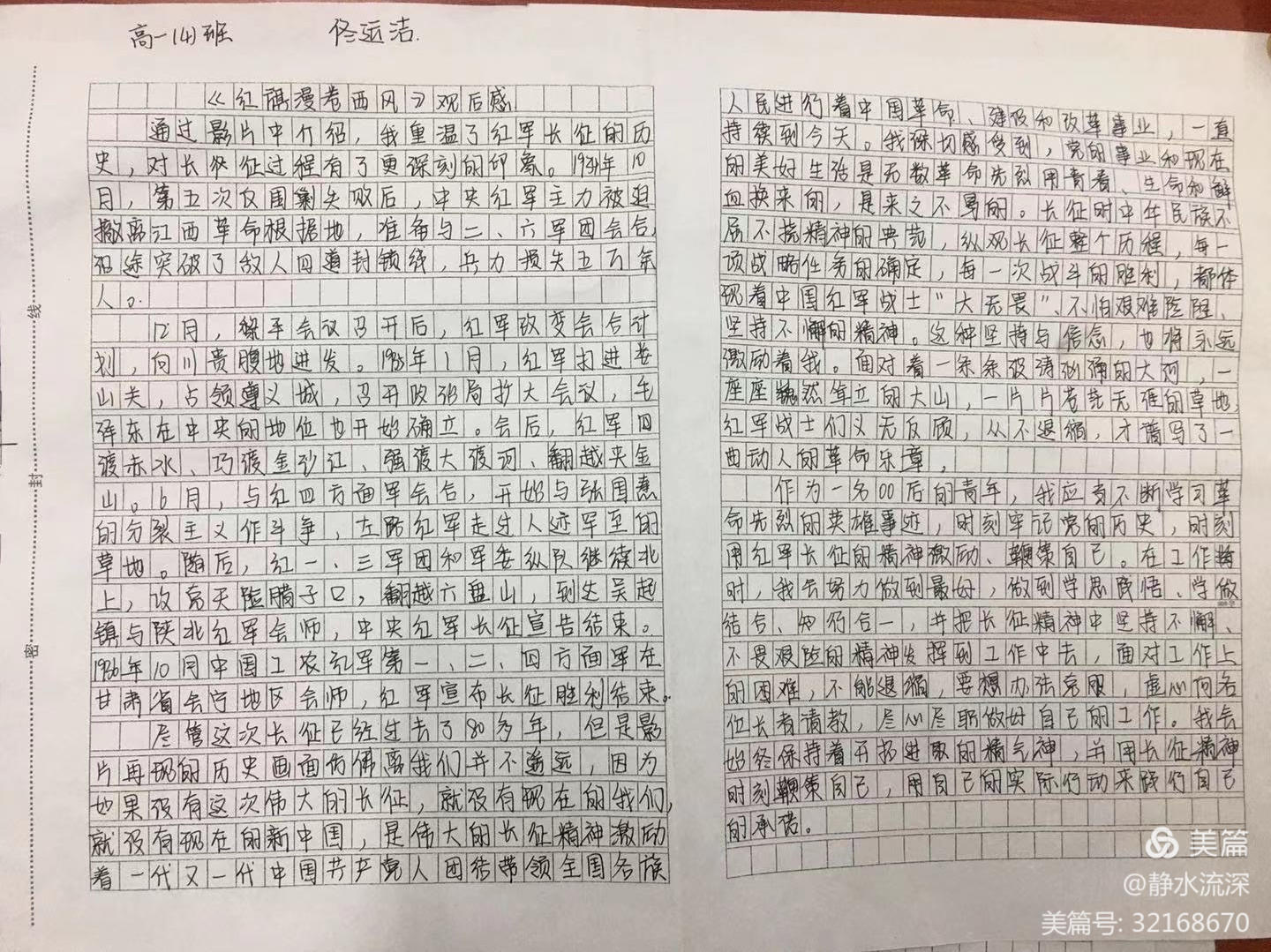 同学们被革命先辈的精神感染,观影认真、投入。 ![]() 《红旗漫卷西风》主要展现了中央红军血战湘江、四渡赤水、巧渡金沙江、爬雪山、过草地到达陕北;红四方面军长征时历经挫折,辗转北上;红二、六军团突破重围,转战云贵、进入四川甘孜与红四方面军会合等伟大历程。 ![]() ![]() 活动结束后,同学们互相交流分享观影体验,纷纷用文章写下自己的感悟,表达了对红军长征精神的由衷敬仰和对党奋斗历程的热情颂扬,并表示要用长征精神激励指导自己的学习和生活。