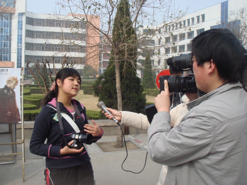 高一团总支书记、摄影协会会长吴雨璇接受电视台记者采访