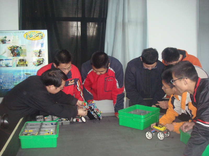 红岸科幻社和电脑爱好者协会在教师指导下进行机器人展示