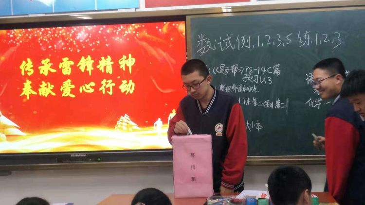 在全校上下“学雷锋”暨“青春志愿行志愿服务”活动开展之际,根据学校工作总体安排,泰安一中新校区2019级组织全体学生开展了爱心基金捐款活动。