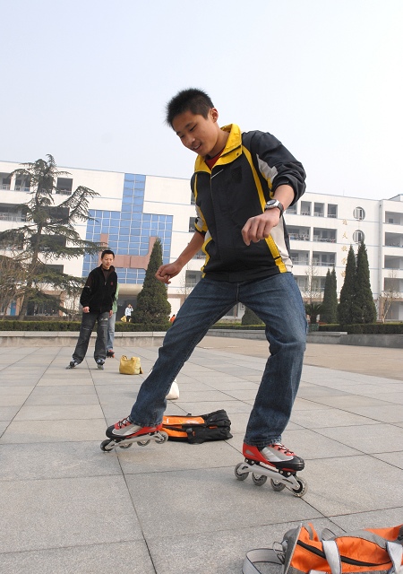 轮滑社团学生在训练中