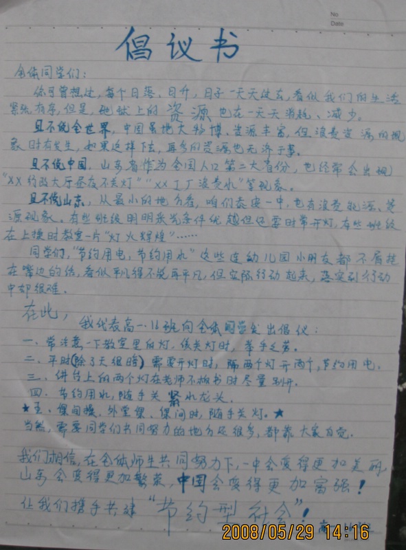 学生的环保,节约倡议书